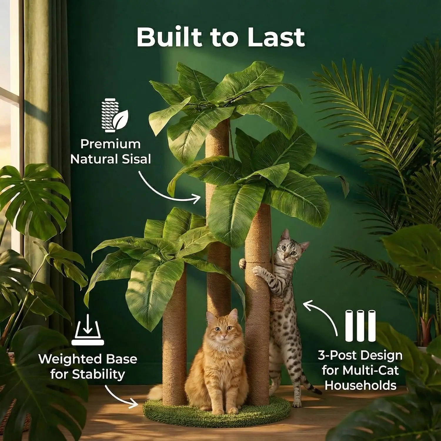 - Three natural sisal scratching posts rise to varying heights (15.75–31.5 inches), giving your cat space to stretch, claw, and relax at every age.