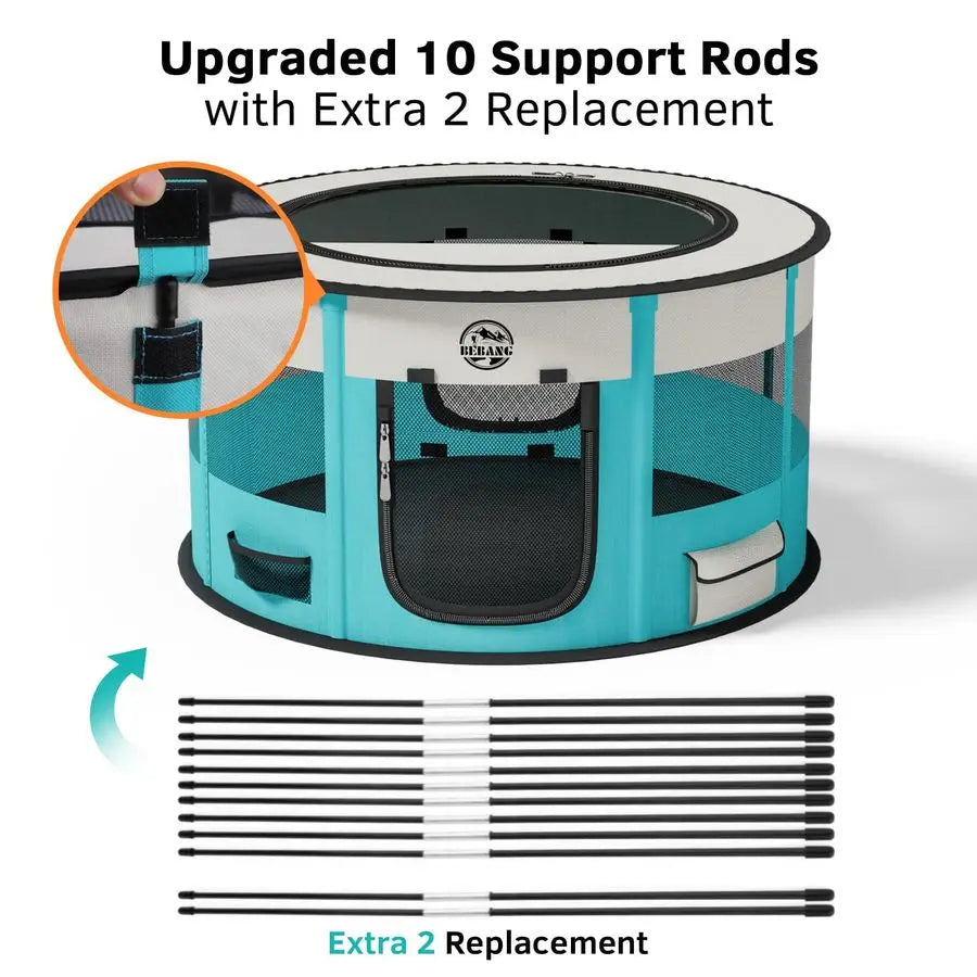 - Built for reliability with sturdy materials, it includes 10 support rods plus 2 extra replacement rods to keep the enclosure stable for small dogs and puppies.